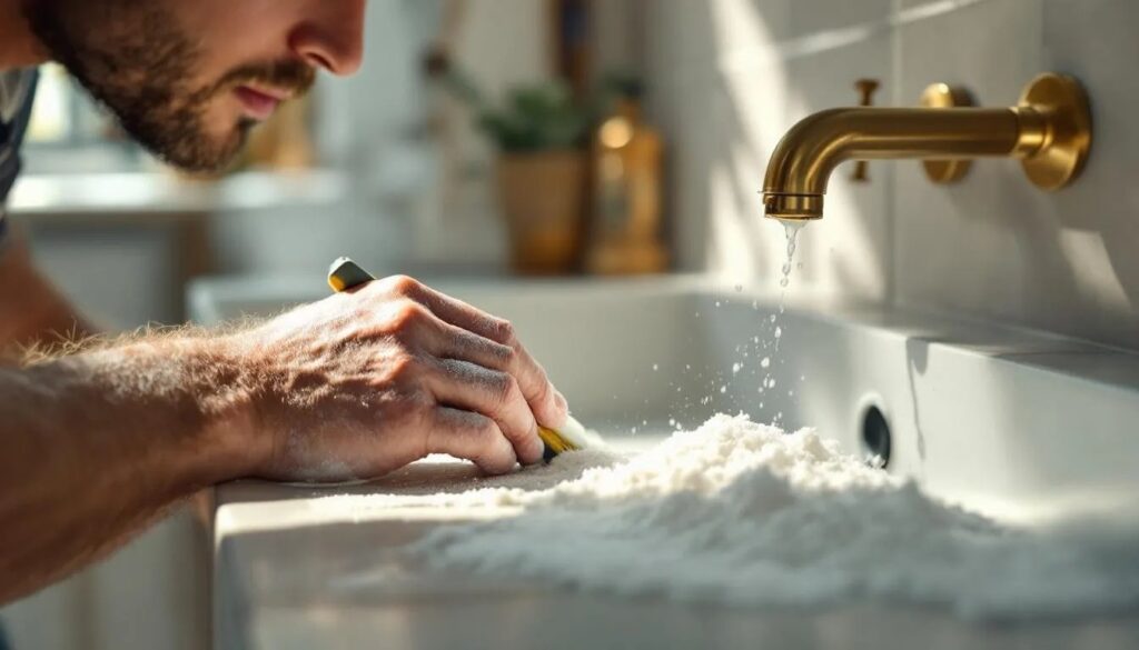 Eine andere Möglichkeit ist die Backpulver-Methode, die in Fliesenleger-Betrieben seit Jahren zum Standardrepertoire gehört. Sie löst Schmutz, Kalk und leichte Schimmelflecken aus Fugen, ohne dass man auch nur einen einzigen Scheuerstrich braucht. Was man dazu benötigt, hat man fast immer schon im Küchenschrank. Wer die Methode einmal angewendet hat, versteht sofort, warum Fachleute sie so konsequent weiterempfehlen – und warum die Kraftanstrengung mit der Fugenbürste schlicht unnötig ist.